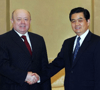 Theo tin đài chúng tôi , ngày 4 tại Bắc Kinh , khi tiếp thủ tướng Nga Phra-đơ-cốp đang ở thăm TQ , chủ tịch Nước TQ Hồ Cẩm Đào mong hai nước Trung Nga không ngừng nâng cao trình độ tổng thể về sự hợp tác chú trọng thực tế , thúc đẩy hợp tác chiến lược Trung Nga gặt hái thành quả rực rỡ hơn nữa trong năm mới .